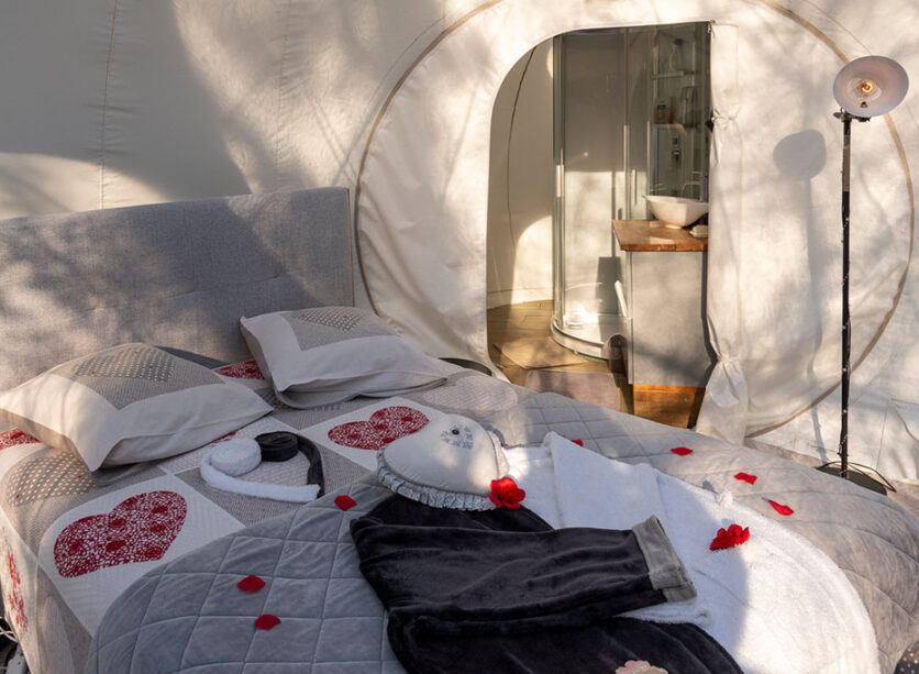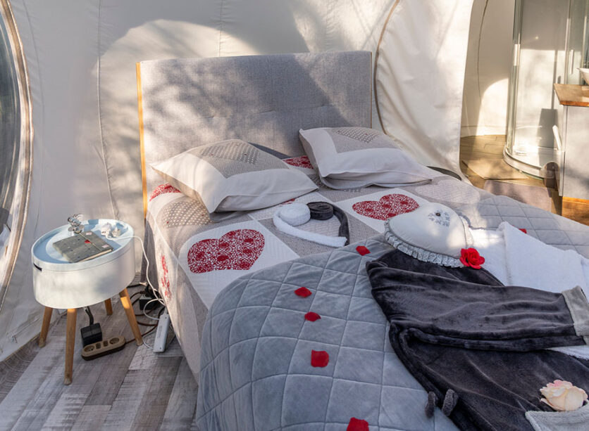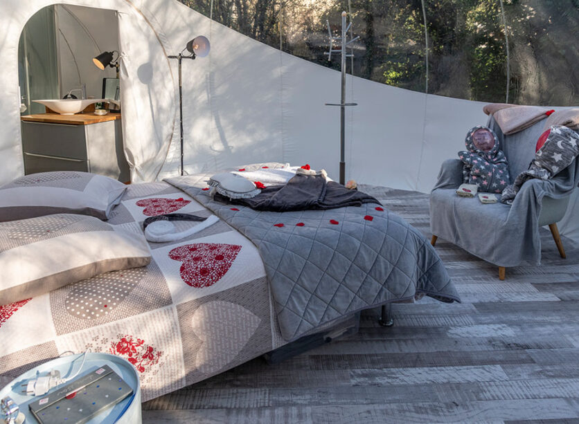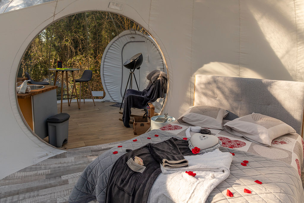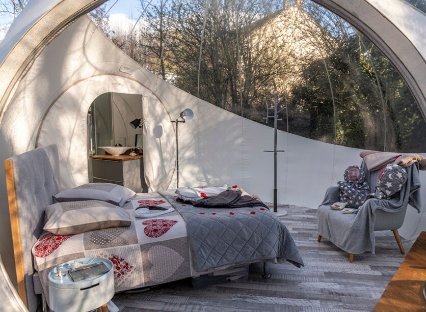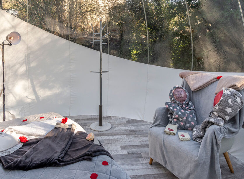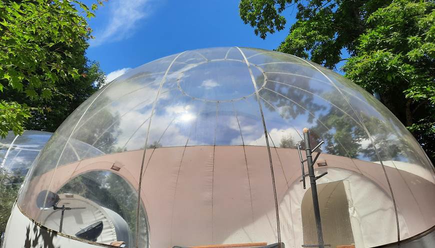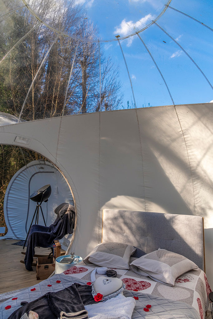 La Maison Bulle vous accueille pour passer une nuit sous les étoiles en toutes saisons. Avec un peu de chance l'hiver, vous pouvez passer la nuit sous la magie de la neige qui tombe recouvrant tout le dôme de la chambre. Au printemps avec les premiers chants des oiseaux. L'été vous vous réveillez avec les premiers rayons du soleil. Et en automne avec toutes ces belles couleurs sur les arbres qui vous entourent.