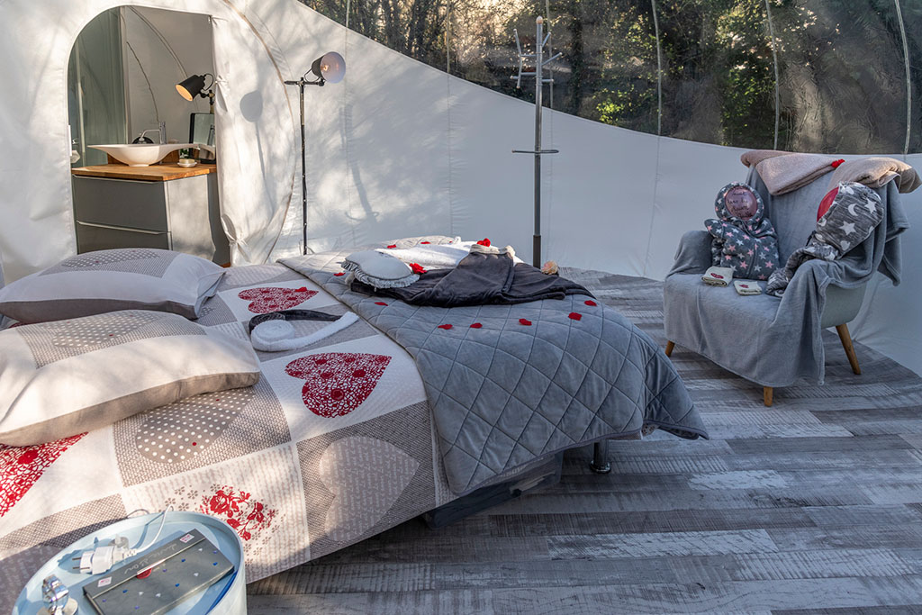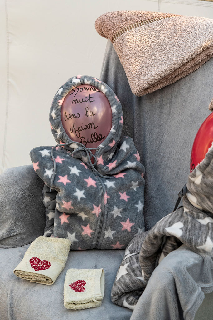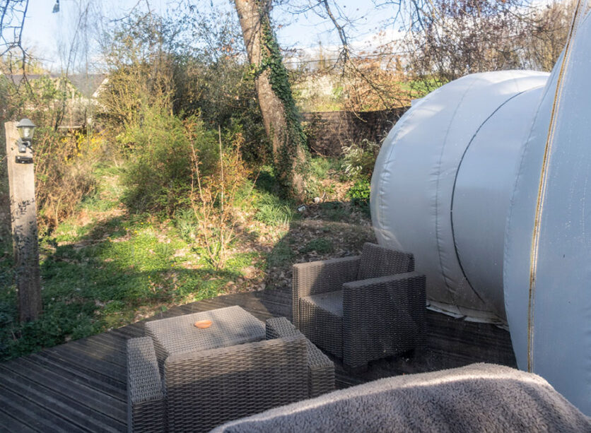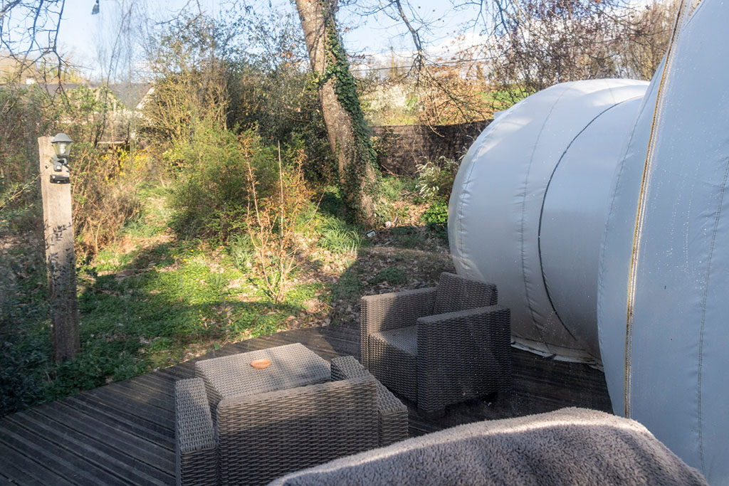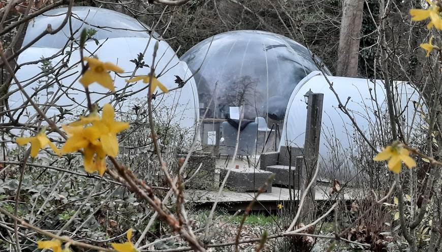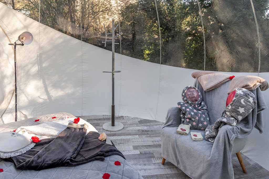 POUR INFO : à l'intérieur de la maison bulle vous sont fournis une grosse couette, 2 couvertures polaires, des pyjamas en pilou, un sur-matelas chauffant, un petit radiateur mais la maison bulle reste un logement INSOLITE et IL FAIT FROID L'HIVER ! LA TEMPÉRATURE INTÉRIEUR EST UN 1 DEGRÉ PRÈS LA MÊME QU'À L'EXTÉRIEUR, DONC PENSEZ A PRENDRE DES VÊTEMENTS CHAUDS. Une terrasse privative est à votre disposition.